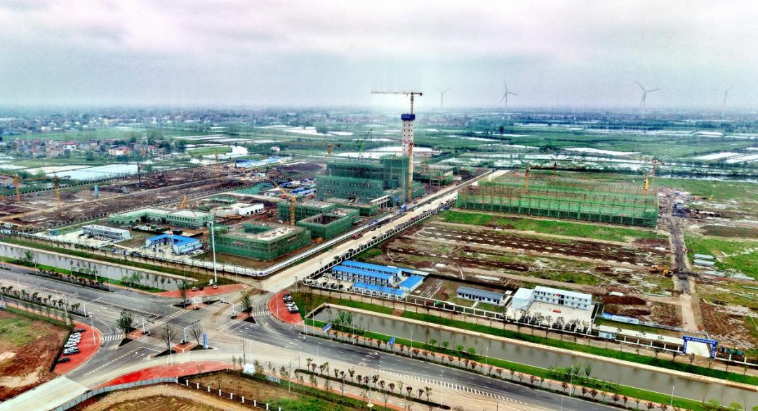在华中绿色纺织新材料产业基地建设现场,高达百米的烟囱和巨大的冷却塔已经拔地而起,这是整个基地的“心脏”——热电联产项目。目前,主厂房已完成90%的结构搭建,锅炉水冷壁、锅炉钢架正在拼装,计划6月底完成全部建设并试机。项目建成后,可实现每小时稳定供应700吨蒸汽,为园区企业提供清洁、稳定的热源,有效降低综合能源成本,补齐能源供应短板。