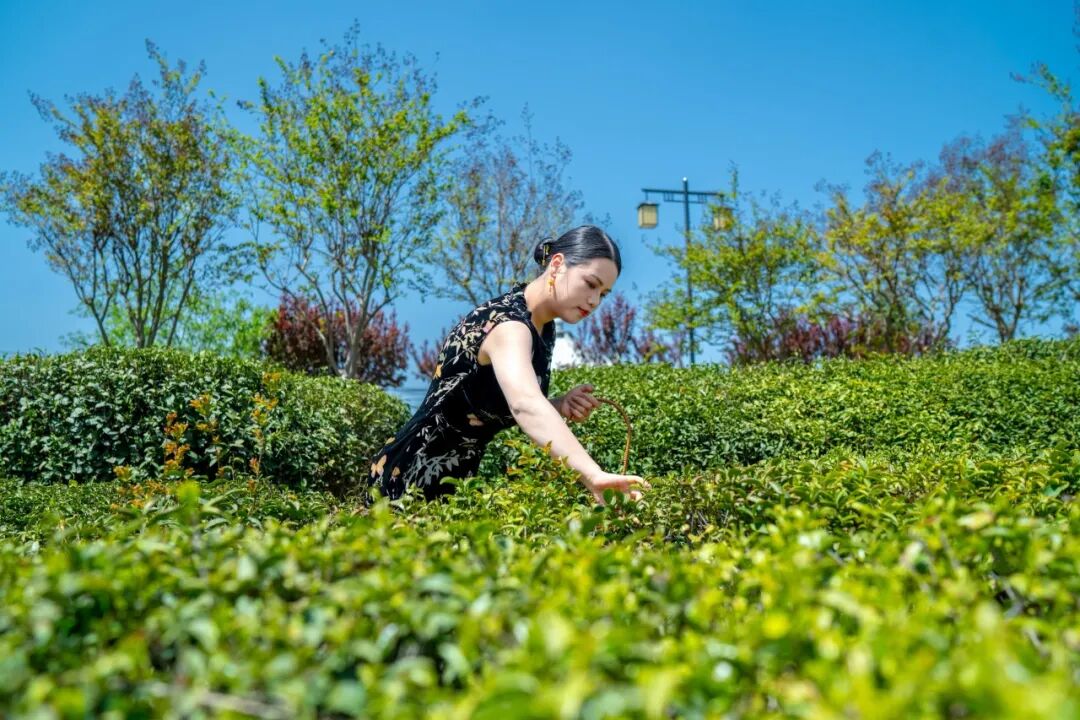 公园依山傍水,茶垄层叠如绿色阶梯,与周边的乌云寺、月牙湖相映成趣。漫步园中,满眼翠绿,茶香扑鼻。