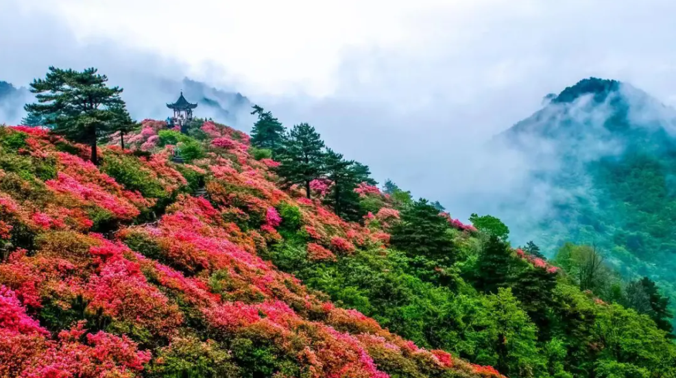 国家5A级景区,地处大别山腹地,以十万亩野生杜鹃花海和雄奇山景闻名,是黄冈山水风光的代表。