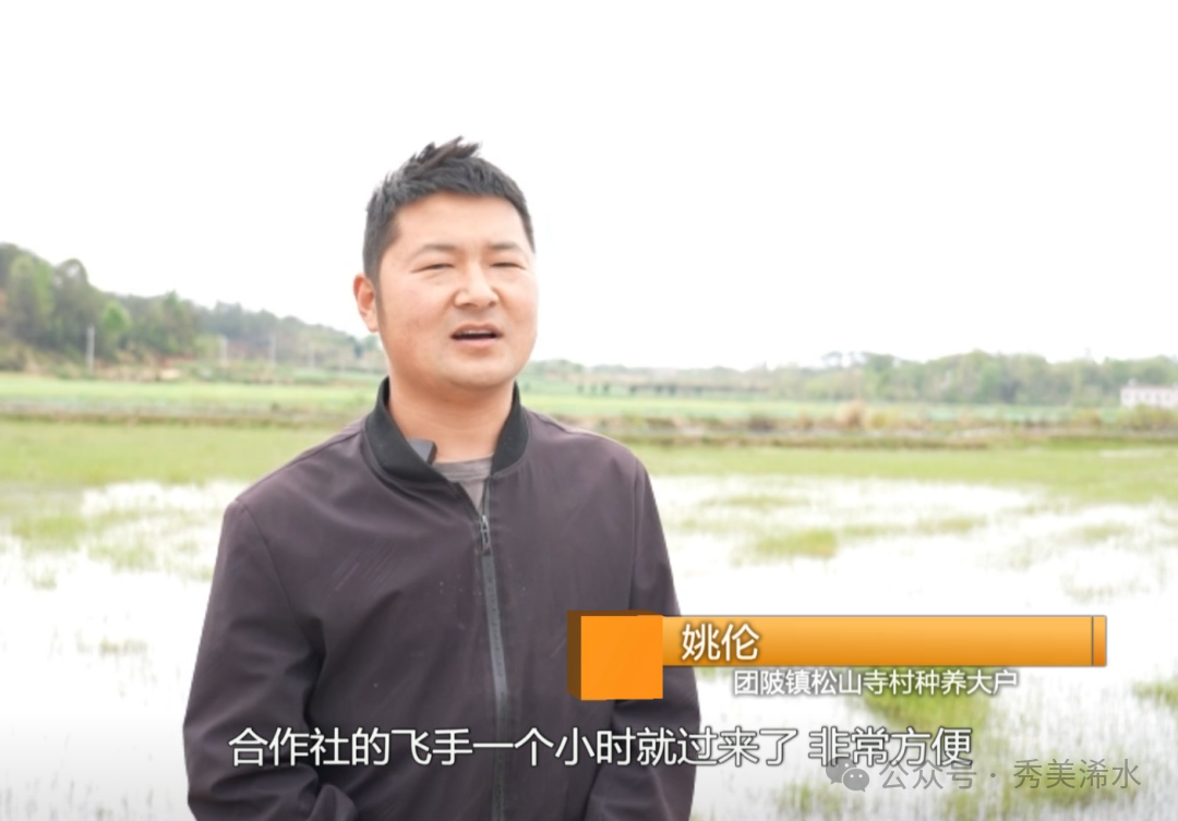 团陂镇松山寺村种养大户 姚伦:合作社的飞手一个小时就过来了,非常方便。