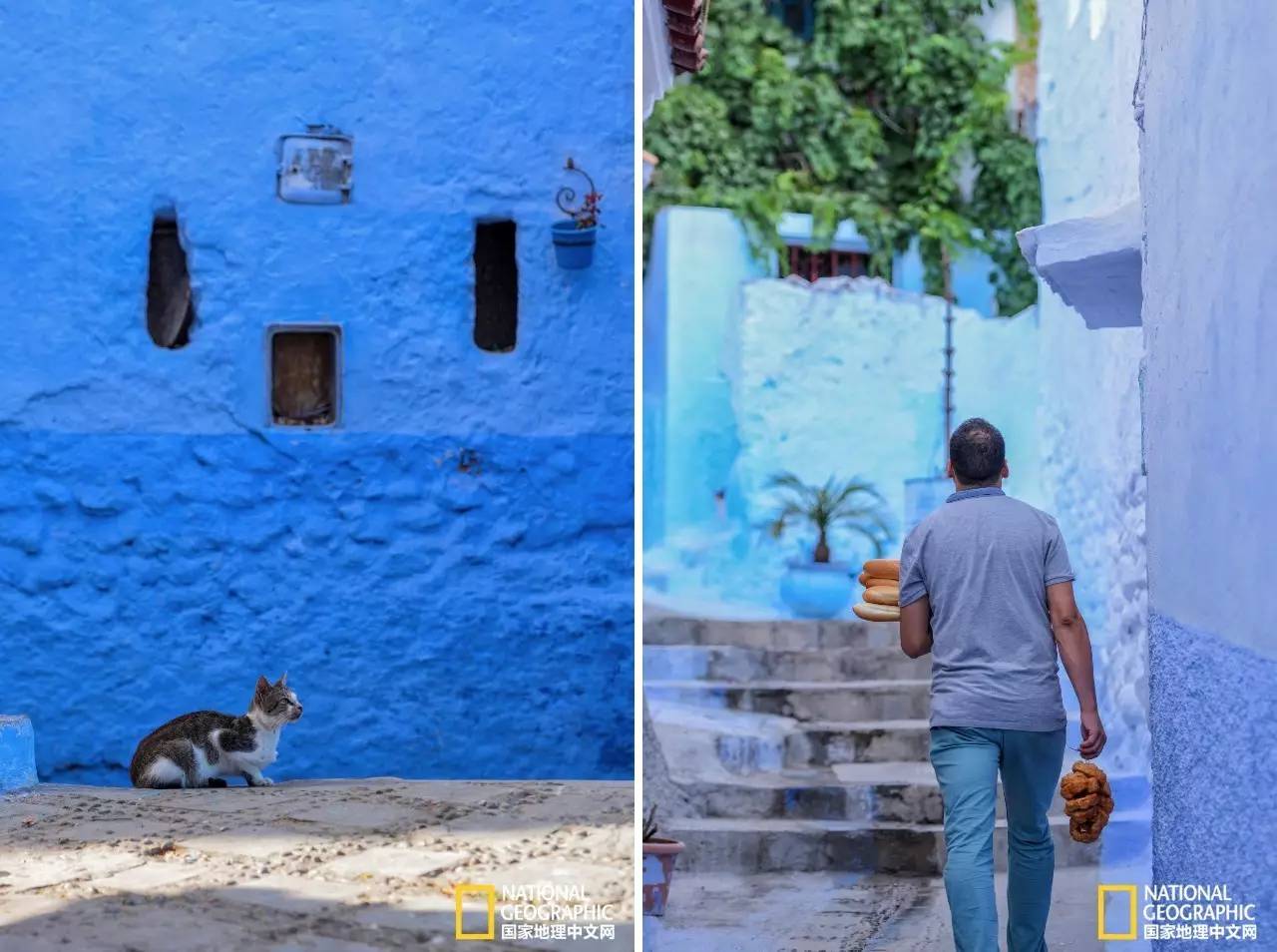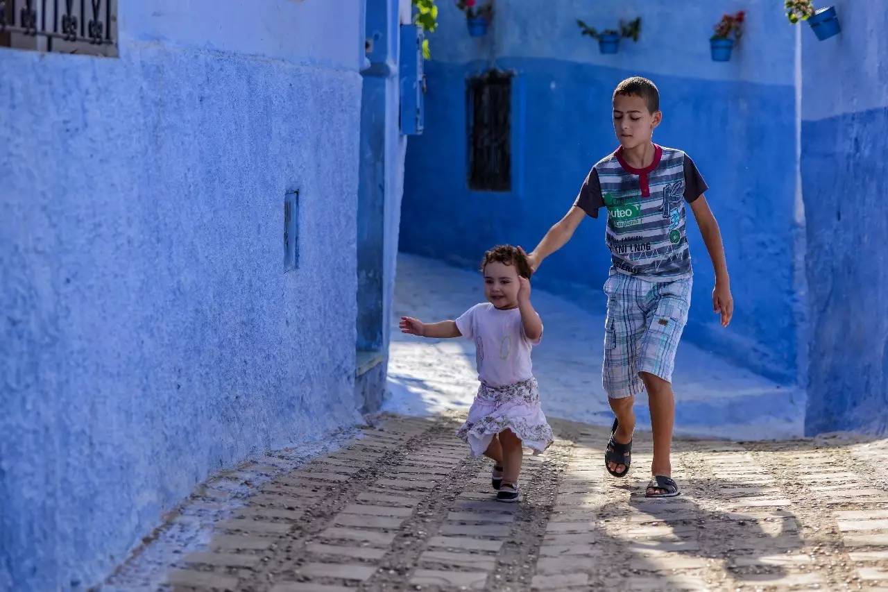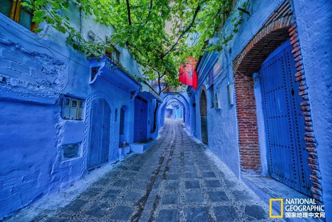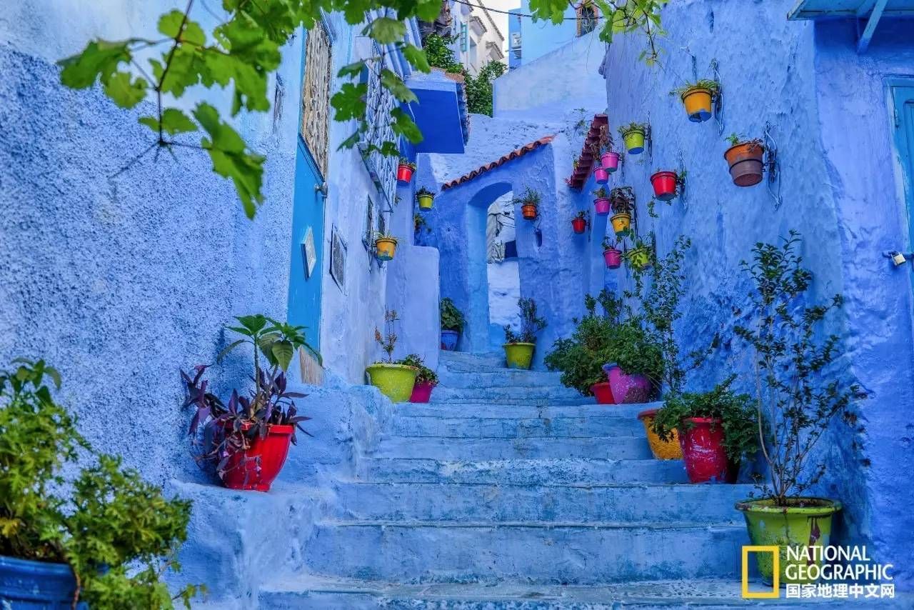 早在几年前,我就常在社交媒体平台上看到这样一些让人耳目一新的照片:窄小的街巷、别致的房子,全被粉刷成各种蓝色,其中或点缀着明艳的盆花,或出现几只慵懒的小猫,浓郁的阿拉伯风情使人一见倾心,不由心生向往。查看照片出处,才知道这是北非摩洛哥小城“舍夫沙万”。
