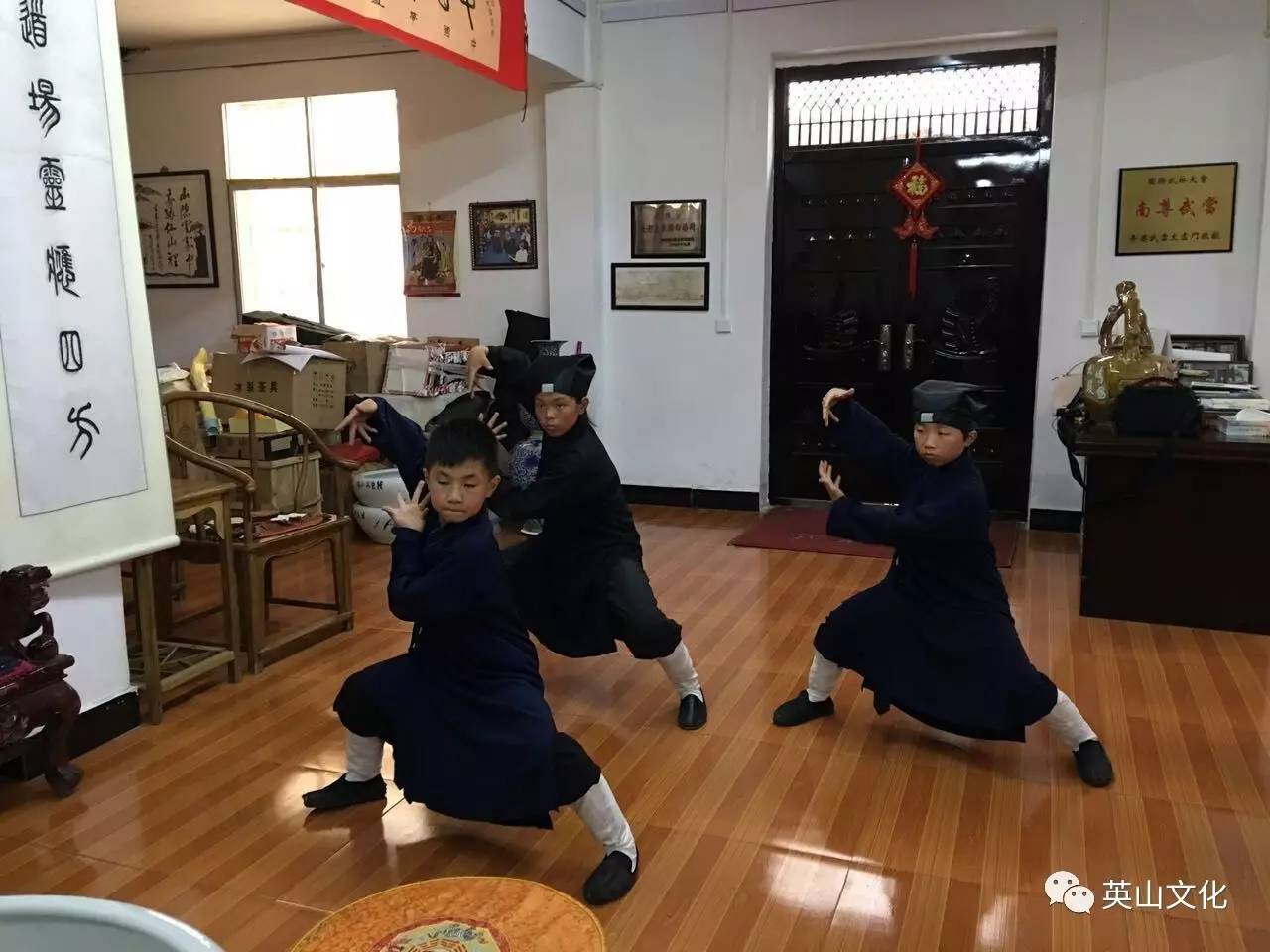 图为小弟子们展示武当派秘传内家拳法