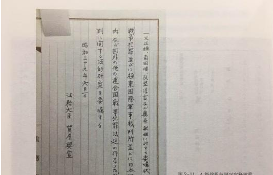 程兆奇书中图片显示,战犯释放重回政界后委托日本学者研究东京审判。