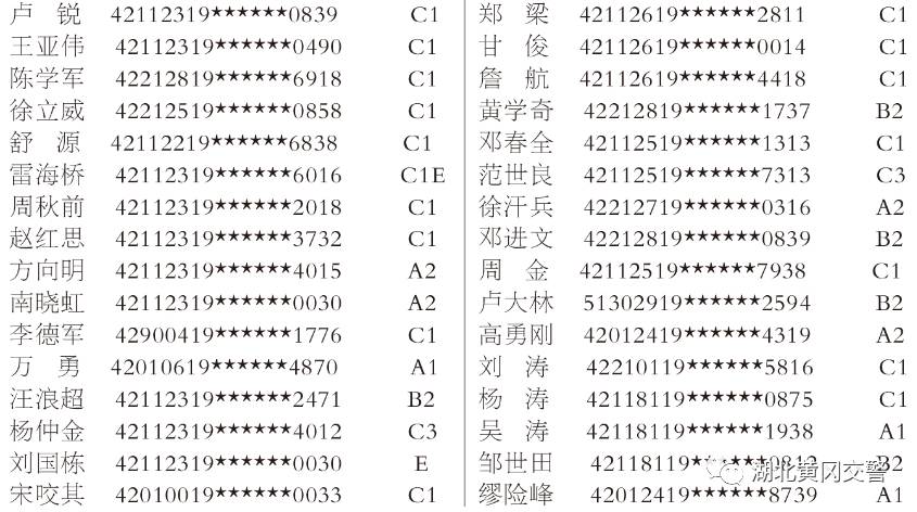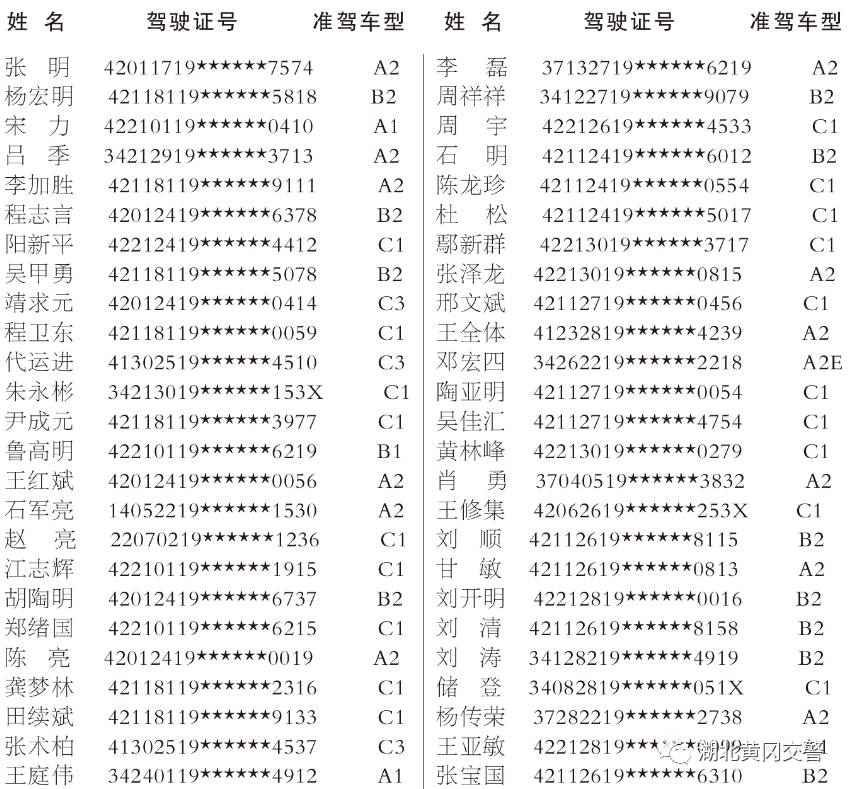 根据中华人民共和国公安部令(第104号)《道路交通事故处理程序规定》第五十八条之规定,对发生道路交通事故构成犯罪,人民法院作出有罪判决后,依法吊销机动车驾驶证。经支队研究决定,现将吊销机动车驾驶证人员名单公告如下:
