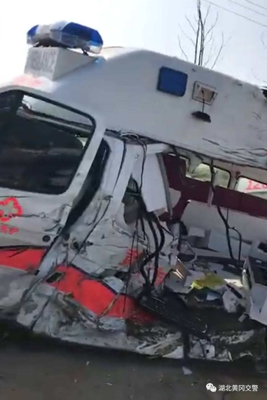 8月22日上午9时许,黄冈市中心医院一辆救护车出诊时,与一辆运砂的货车相撞,救护车内司机和医护人员3人受伤。出诊的救护车后车厢撞毁变形严重,所幸伤者并无生命危险。