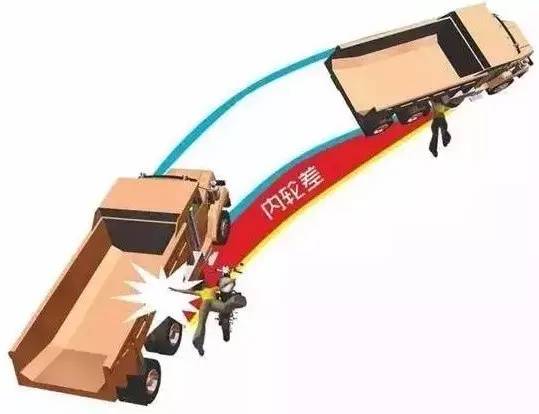 大货车不仅有盲区,且因车身较长,车体较高,转弯时还存在着可怕的内轮差。