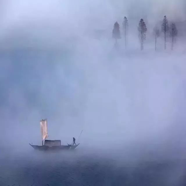 一叶小舟,一个渔翁,泰然垂钓,