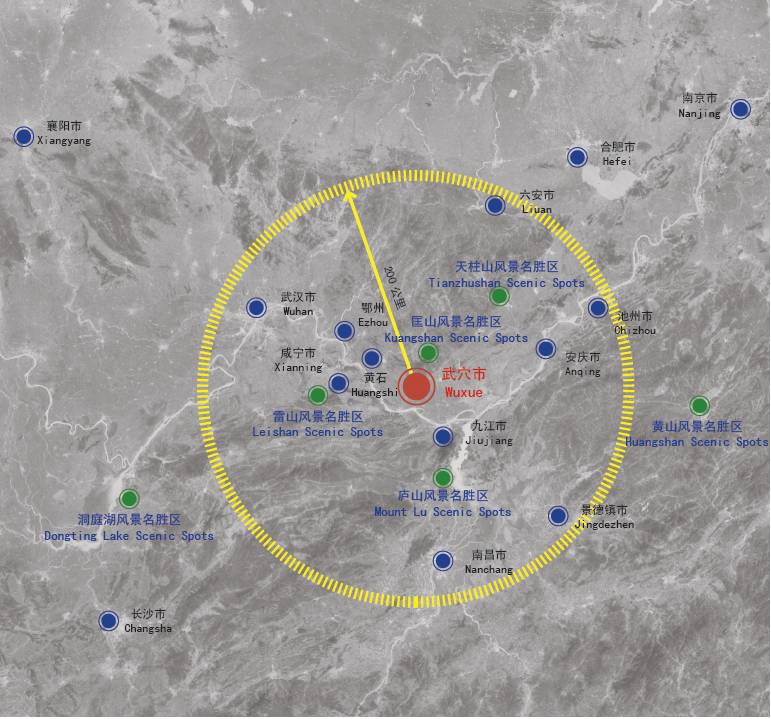 项目位于武穴市中部,紧靠S308 省道、沪渝高速及麻阳高速,交通十分便利,西至武汉,东至合肥,南至南昌,均在两小时车程以内,并处于大别山旅游圈、黄山旅游圈、庐山旅游圈“三圈”交汇处。
