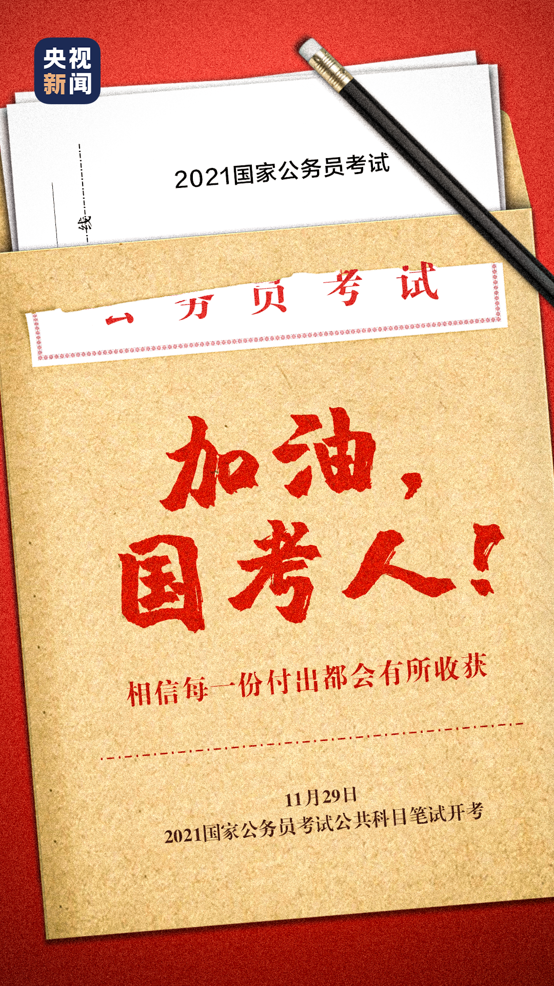 中央机关及其直属机构2021年度考试录用公务员今日(29日)开考,157.6余万人报名参加。