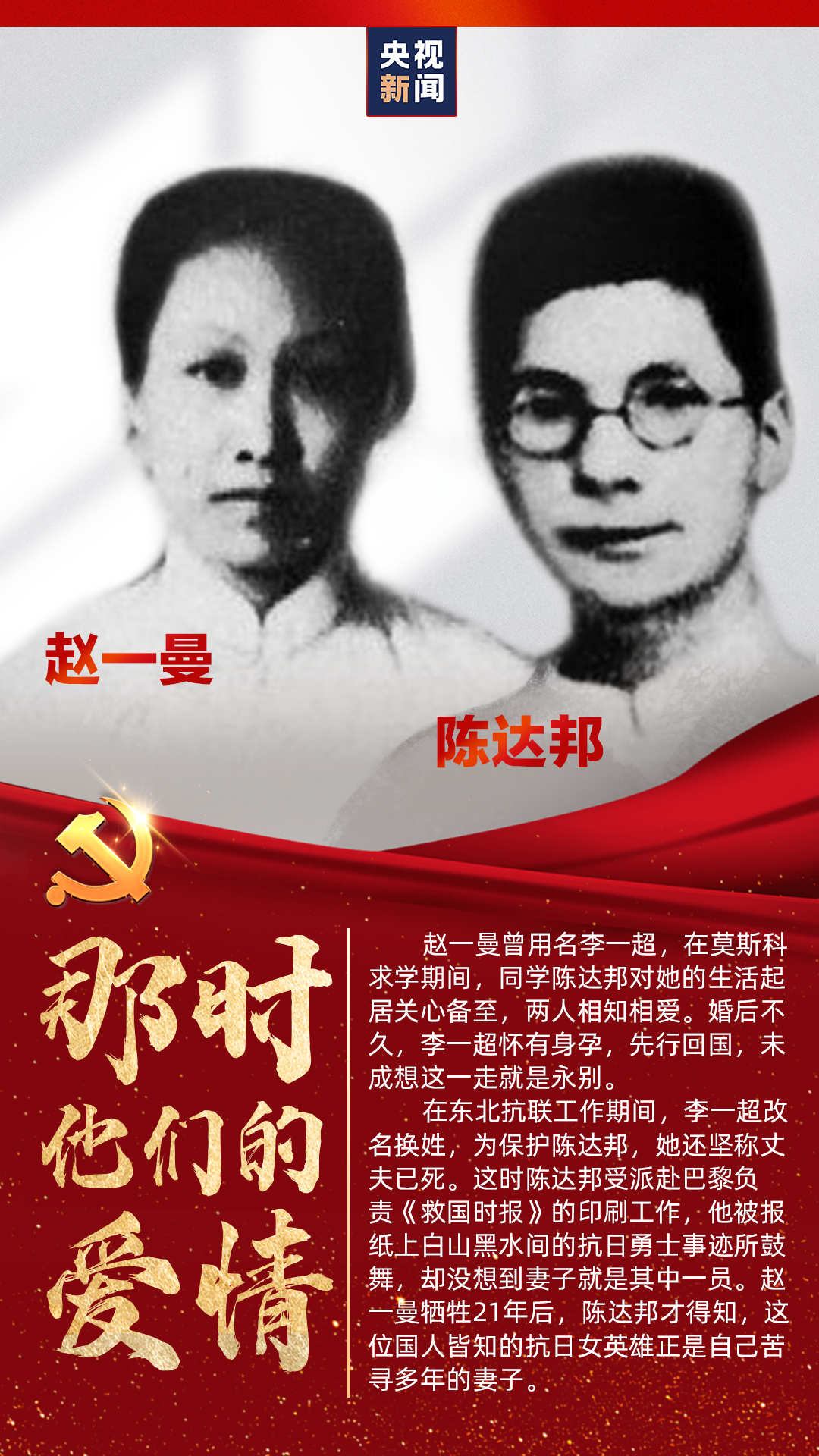 爱情是什么?万千个人也许会有万千种答案。中国共产党走过百年历程,许多先辈也曾在金子般的年华里遇到过最美好的爱情。在烽火硝烟、生死考验面前,他们如何抉择?又如何诠释“忠诚”?央视新闻推出专栏《那时他们的爱情》,记录一代又一代中共党员爱的誓言。