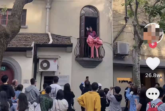 “五一”期间上海武康路一位老奶奶和她家阳台上的粉色蝴蝶结