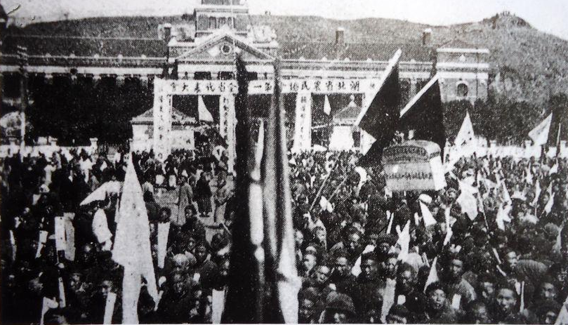 1926年10月中旬,北伐军叶挺独立团的战旗插上武昌城头后不几天,在麻城乘马会馆小学堂当校长的共产党员王树声,回到家乡石槽冲,站在东岳庙前的大松树下振臂高呼:“北伐胜利了!军阀垮台了!大家盼望的好世道来了,穷苦农友们,快来参加农民协会呀!”