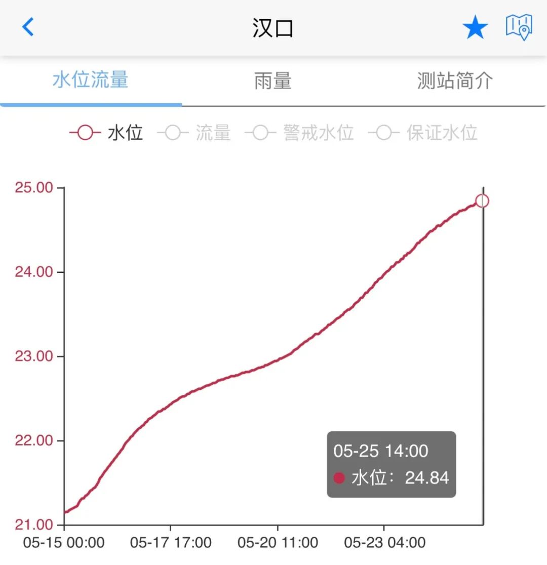 水文资料显示,25日14时,汉口站水位为24.84米,距离25米的设防水位仅差0.16米。武汉市防办信息显示,7条重要支流水位均在设防以下。