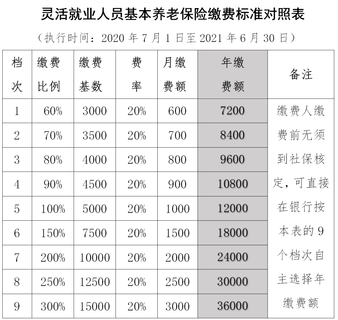 1、本表档次只适用于缴纳2019年7月1日至2021年6月30日期间的养老保险费,2021年7月份后标准另行调整。
