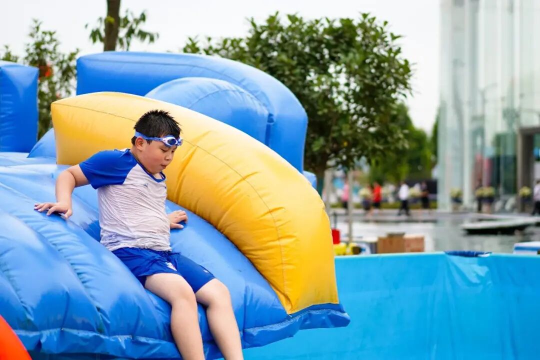 当日白天,武汉万达文旅城示范区的开放活动也为到场市民带来诸多欢乐。“水上嘉年华”成为大部分来宾的首选娱乐项目,不少家长带着孩子来到水上乐园区域避暑游玩,在充气式“城堡”中参与水上闯关游戏,在激扬的水花中释放夏日活力。