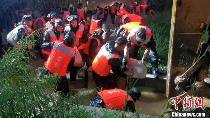 图为武警河南省总队机动支队封堵河流决口。武警河南总队机动支队供图