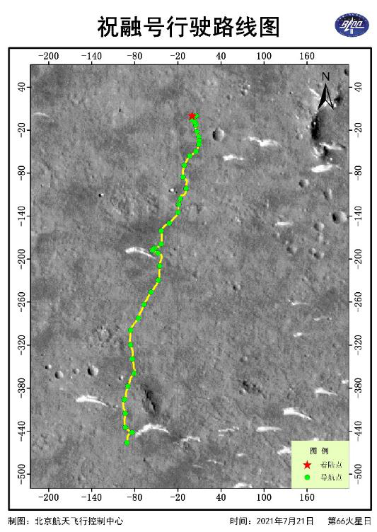 23日,国家航天局发布了“祝融号”火星车最新行驶路线图以及火星沙丘高清影像。目前,“祝融号”火星车已在火星表面累计行驶585米。