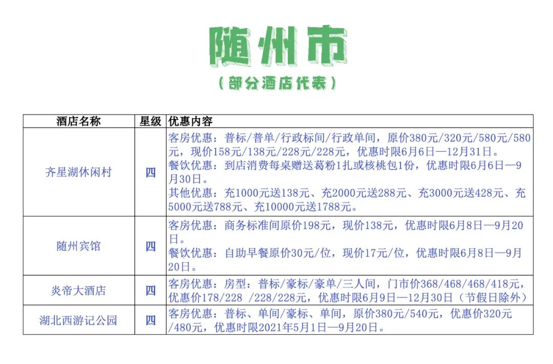 湖北各个星级饭店在住宿、餐饮、会务等方面纷纷推出惠民让利的优惠活动共推出各类优惠活动措施280条其中客房优惠措施138条餐饮优惠措施101条其他优惠措施41条