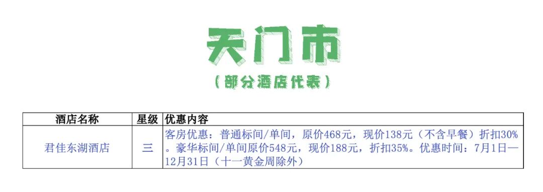 如武汉滨湖大厦标准大床房低至4.4折;武汉锦江国际大酒店自助早餐统一半价优惠;武汉江城明珠豪生大酒店携手《知音号》推出“知音礼遇”服务,“商务套房知音套票”低至4折;襄阳名人酒店对住店宾客均提供个性化、定制化接待服务,并联合唐城景区推出“酒店+景区”多款套票活动,为旅行出游的客户提供便利。各大酒店优惠活动详情如下↓↓↓