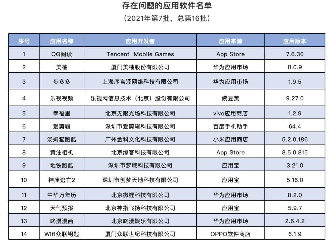 附件:存在问题的应用软件名单(2021年第7批,总第16批)