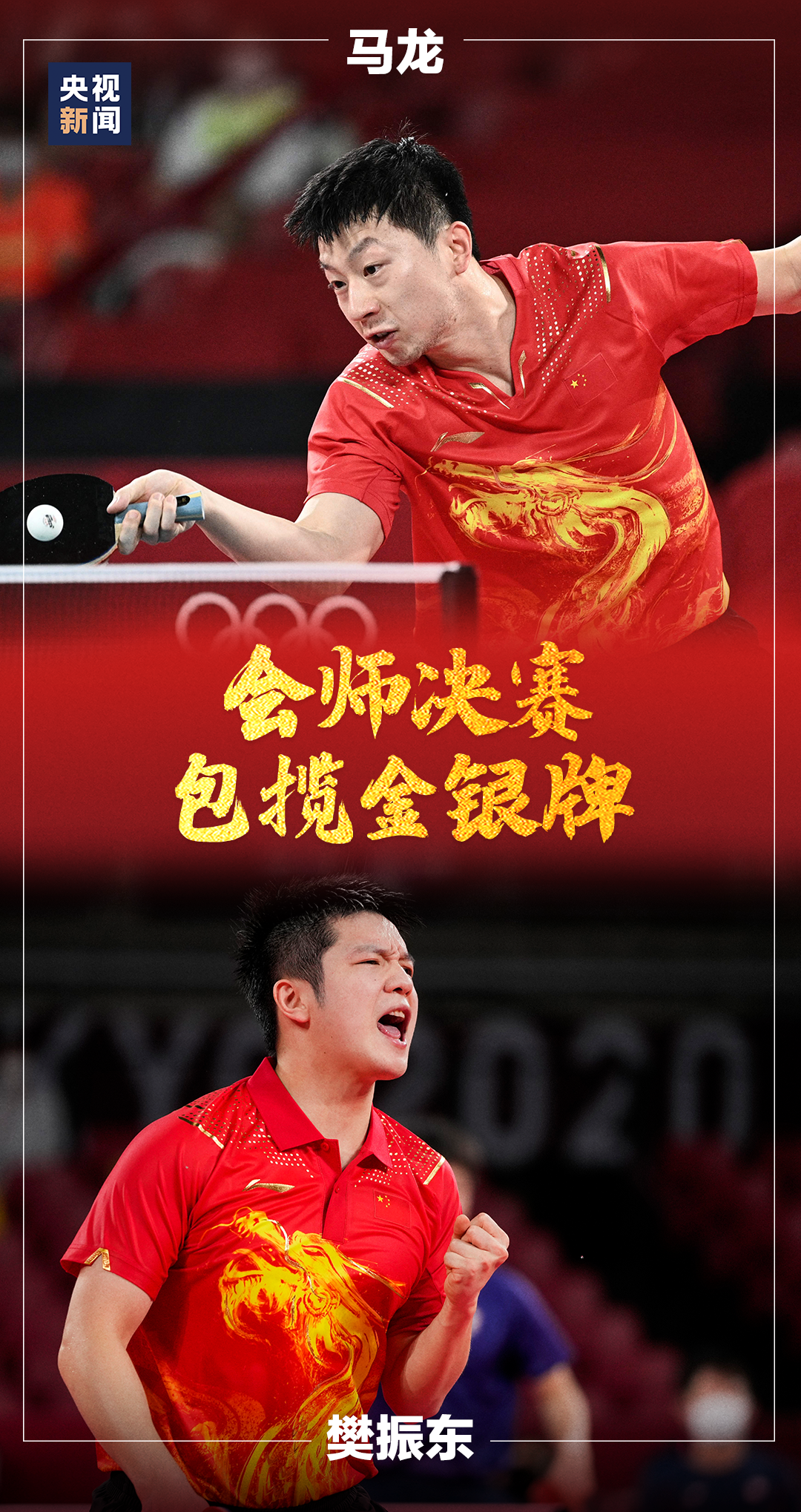 乒乓球男子单打半决赛,中国选手樊振东、马龙分别战胜对手晋级决赛,中国队提前锁定本届奥运会乒乓球男单金银牌。