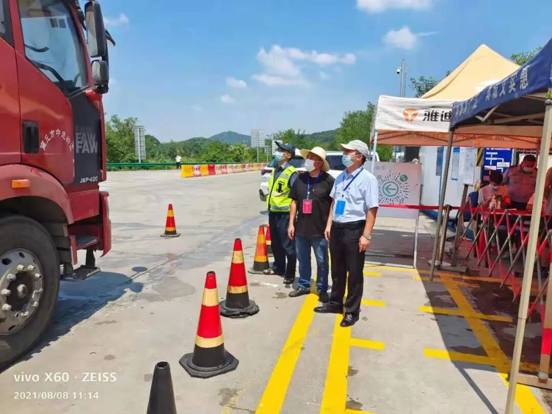 8月2日晚22:00,红安治超专班执法人员在全力做好永佳河镇三个交通疫情防控卡口的同时,抽调一个流动中队加强对超限运输车辆绕行省道、县道的巡查管控力度,截至目前,在县道红两线,已查扣违法超限运输车辆6台。从8月3日凌晨起,我县又在武麻高速八里出口设置一个交通疫情防控卡口,治超专班全部执法人员全力投入到疫情防控工作中。夏日炎炎,烈日酷暑,在持续的高温天气下,面对高温天气的“烤”验,他们身着荧光黄背心,奔忙在各交通防控卡口一线,穿梭在卡口车辆和人群中。在五十多度高温下,宣讲疫情防控政策,严格查验由中高风险地区来红、返红的车辆和人员,对未持核酸检测阴性证明的车辆及人员进行劝返和心理疏导,进一步做好老人、儿童、孕妇等重点群体服务,提高人员通行效率,保障群众平安、健康、便捷出行。