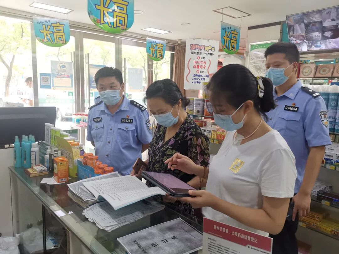 8月10日,黄冈市公安局食品药品犯罪侦查支队、黄州公安分局治安大队、市市场监督管理局和黄州区市场监督管理局等四家单位联合检查黄州城区部分零售药店疫情防控工作。