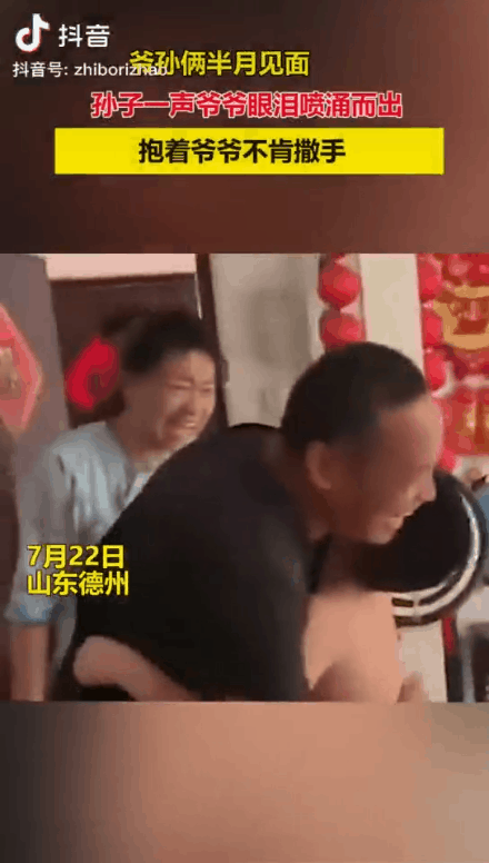 山东德州爷孙俩半个月没有见面爷爷回到家打开门孙子激动地大喊一声“爷爷”