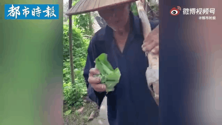 7月15日山东淄博一位爷爷从地里干活回来颤颤巍巍地拿出一个绿叶小包打开小包里面是他给孙女摘的野果