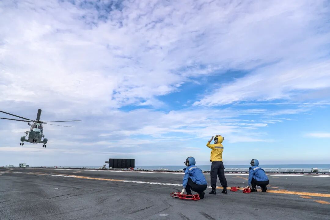 “放飞成功!”近日,辽宁舰飞行甲板上随着指挥员指令下达,战机平稳升空完全由女舰员组成的直升机放飞、接收小组