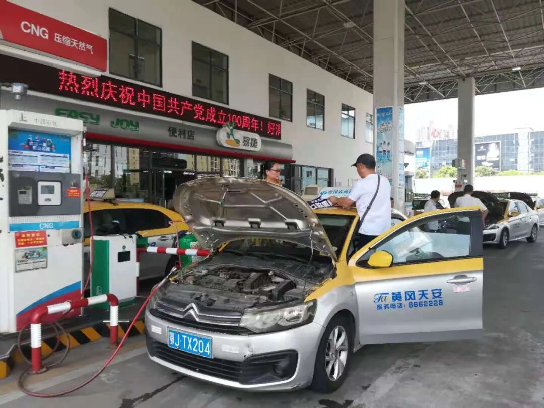 在加气站督促出租车清洗车辆