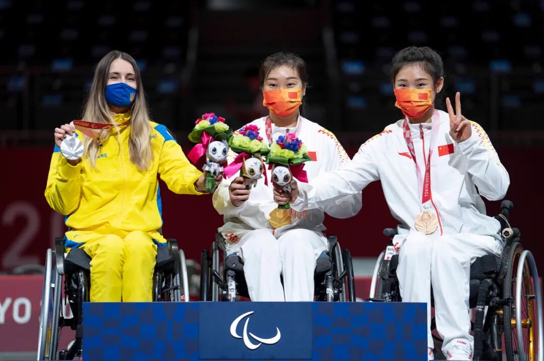 在东京残奥会轮椅击剑男子个人佩剑A级决赛中,中国选手李豪获得金牌;在轮椅击剑男子佩剑个人赛B级决赛中,中国选手冯彦可获得金牌;在轮椅击剑女子佩剑个人赛A级决赛中,中国选手边静获得金牌;在轮椅击剑女子佩剑个人赛B级决赛中,中国选手谭淑梅获得金牌;在游泳女子200米自由泳S5级决赛中,中国选手张丽获得金牌。