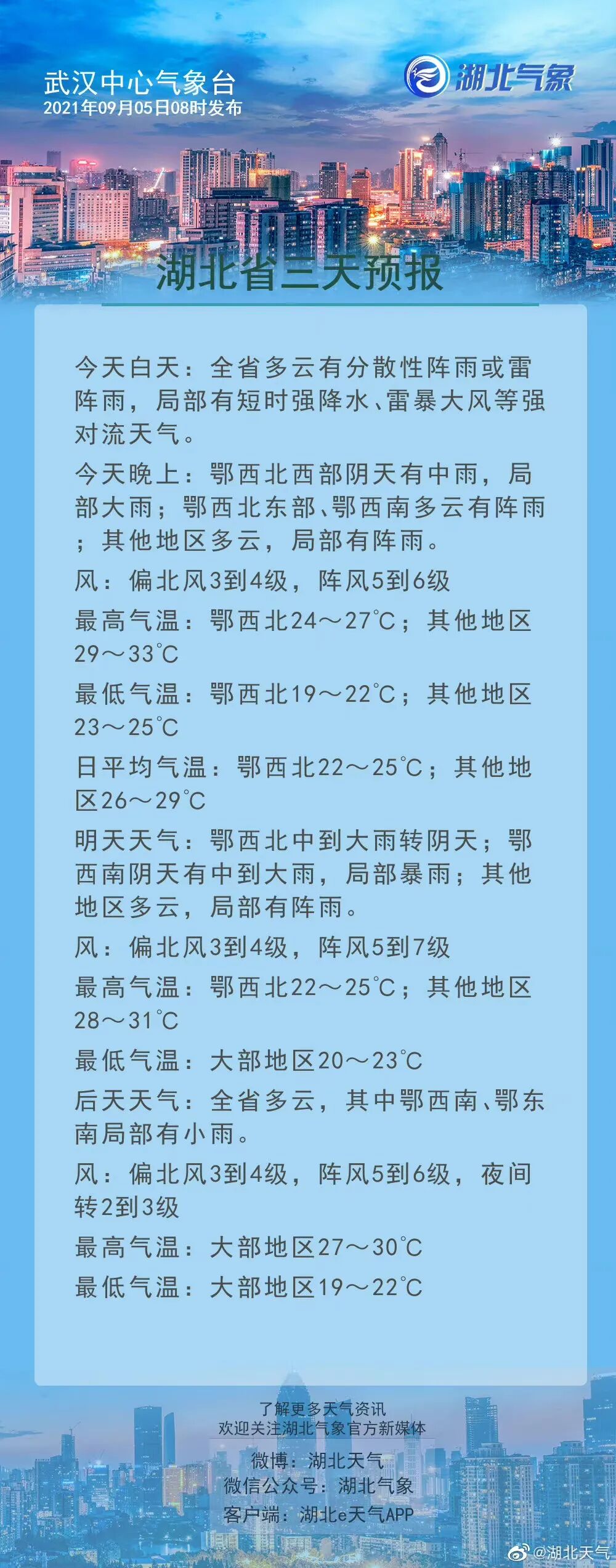 分散性阵雨来了,湖北局部有短时强降水、雷暴大风