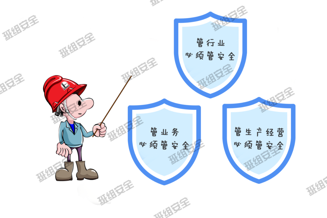 三个必须:安全生产工作实行“管行业必须管安全、管业务必须管安全、管生产经营必须管安全”,强化和落实生产经营单位主体责任与政府监管责任,建立生产经营单位负责、职工参与、政府监管、行业自律和社会监督的机制。