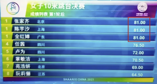 就有3位选手并列第一