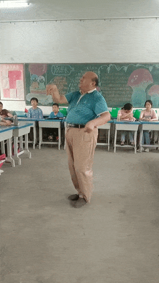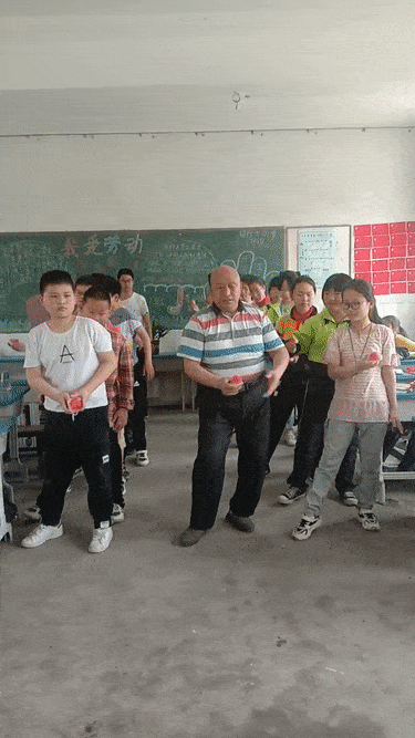 李老师带着孩子们跳自己改编的舞