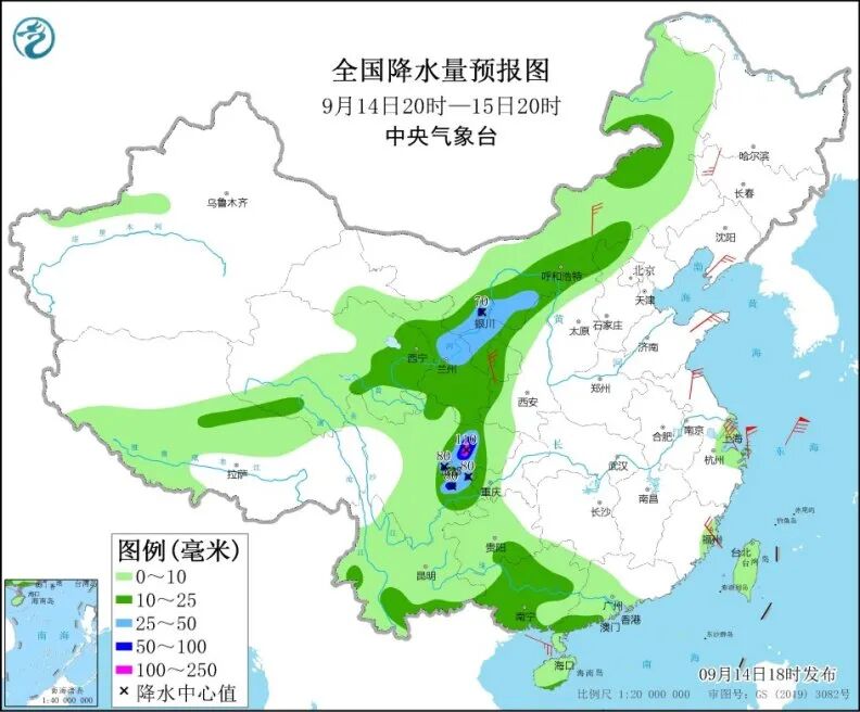 中央气象台预计,14日20时至15日20时,内蒙古中西部和东北部、西北地区东部、西南地区东北部和南部等地的部分地区有中到大雨,其中四川盆地中西部、宁夏北部等地的部分地区有暴雨或大暴雨。