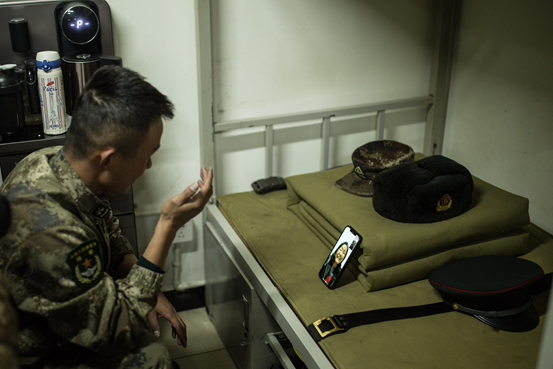 晚餐后,来自江西井冈山的3连9班班长万波与母亲进行视频通话。12年的军旅生涯中,万波很少回家。在通话时,眼中噙着泪水的他告诉母亲:“别担心,我只是有点想家。”
