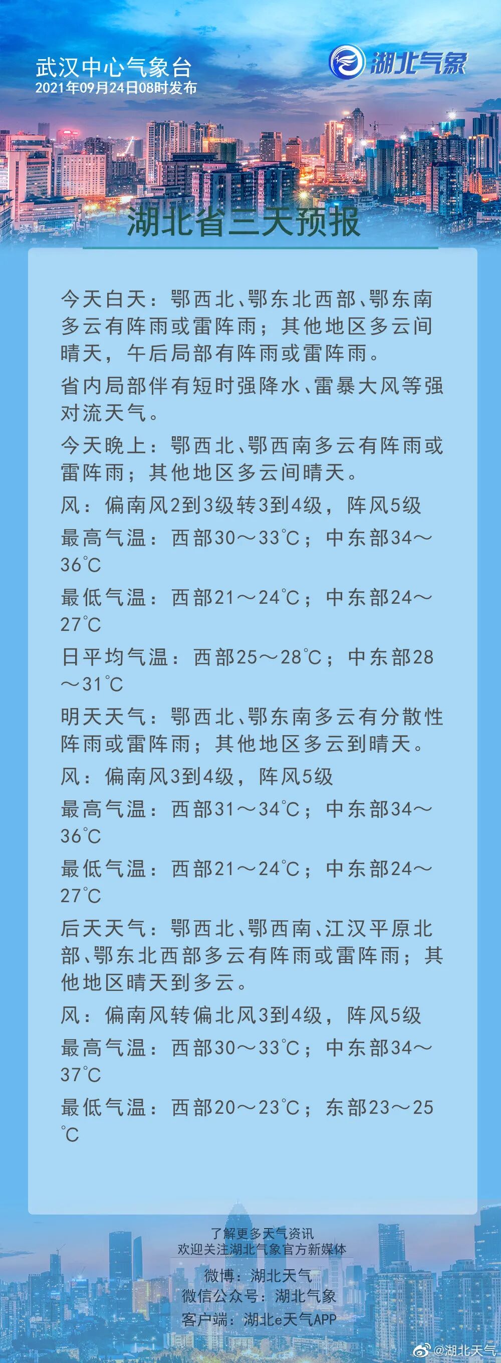 据湖北气象,预计未来三天,湖北省西部和北部有分散性阵雨或雷阵雨,其他地区则是晴天到多云的天气。今天西部地区高温在29~32℃,明天略有上升,后天高温将达31~34℃,而东部地区未来三天高温都将稳定在34~36℃。