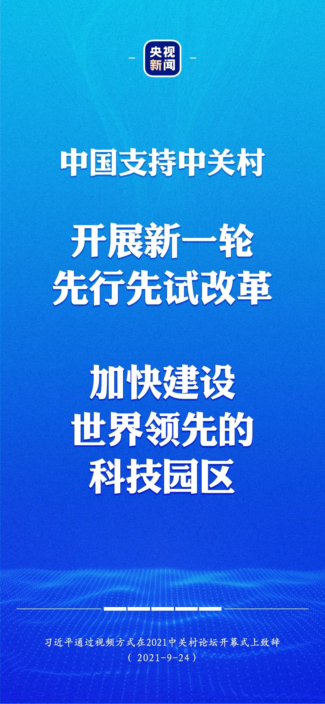 习近平:中国支持中关村开展新一轮先行先试改革 2021-09-25 08:00 0 24日晚,2021中关村论坛开幕式在北京举行。中共中央总书记、国家主席、中央军委主席习近平通过视频方式在开幕式上致辞。 来源:央视新闻