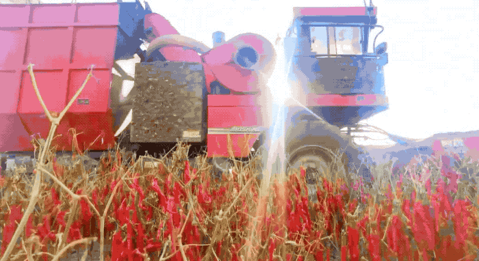 今年,安集海镇一共种植了近20个品种的辣椒。从种到收,这里的辣椒已基本实现全程机械化。采收机一天可以采收100至120亩地,相当于以往500人一天的劳动成果,成本也只是过去的十分之一,既省钱又高效。