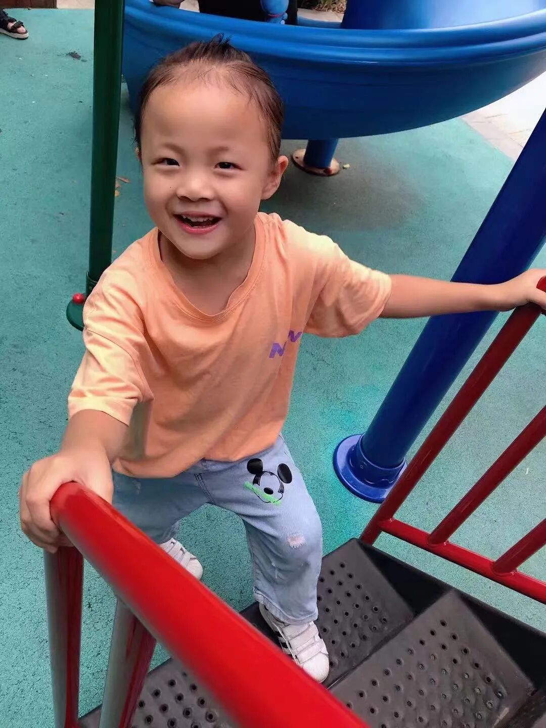 如今越走越稳还能爬楼梯