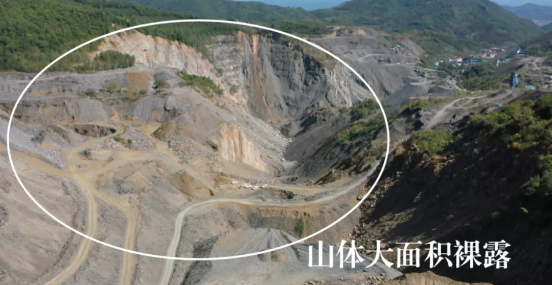 原本青翠的山体大面积裸露、伤痕累累,几十米深的矿坑犹如大自然的一个巨大伤口,堆场长期超范围、超总量堆放废石……