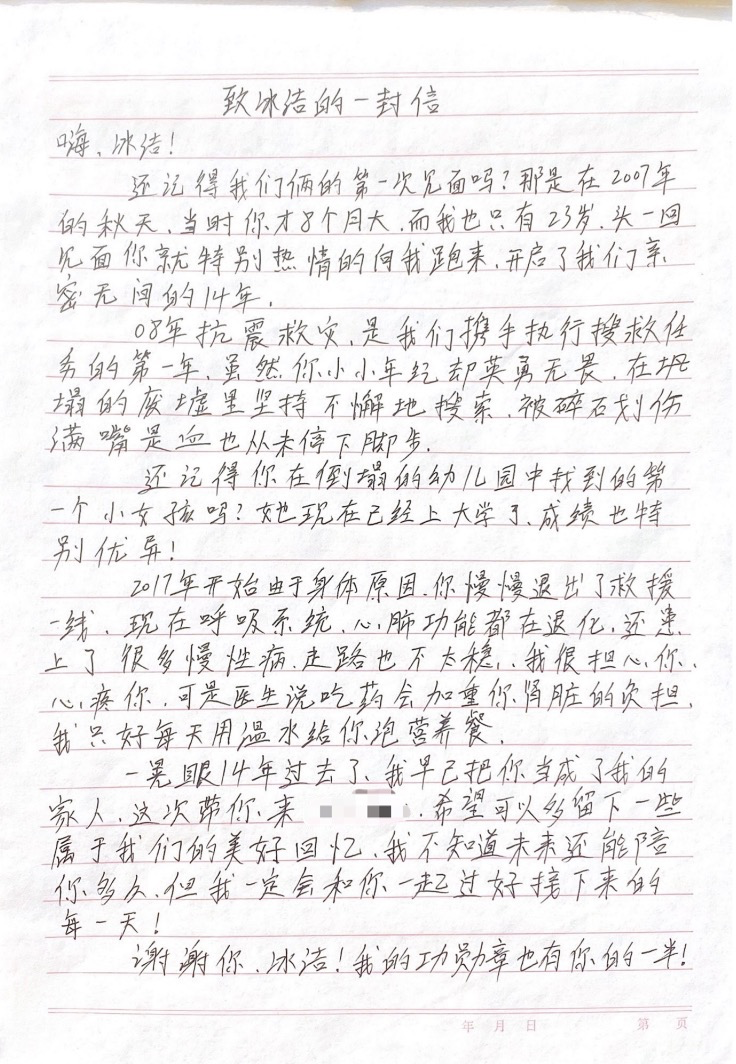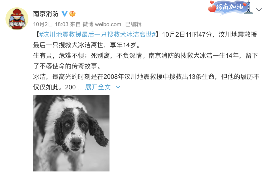 搜救犬冰洁离世