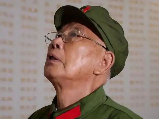 在广西军区军史馆一位92岁的耄耋老人久久地站在烈士墙前凝望
