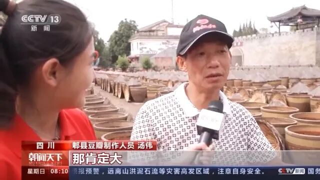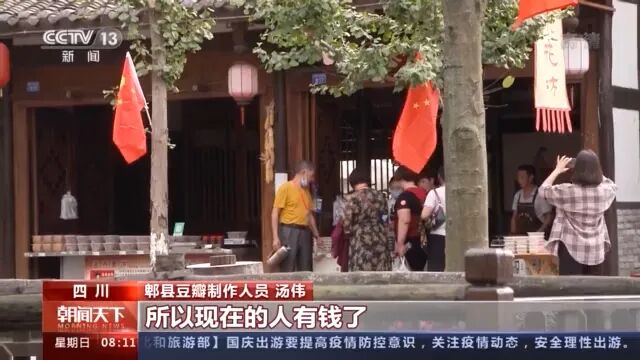 郫县豆瓣制作人员汤伟:“那肯定大嘛,逐渐地富裕起来,以前出国游这些不好办,现在出国游这些,人人都可以出国,只要有钱,大家都可以出去对不对。”