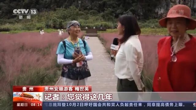 贵州安顺游客梅世英:“如今,各乡各寨都有很大变化的,村村都通公路,都脱贫了,小康了。没有吃不上饭穿不上衣的了。快80岁的我们都能够出来享这个福,没有什么后顾之忧,国家给我们这么好的待遇,我觉得这就是国家的伟大!”