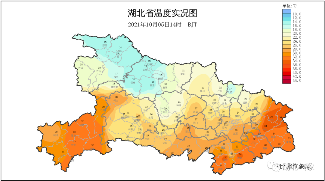 最高气温:鄂西北17~21℃;鄂东30~33℃;其他地区23~27℃