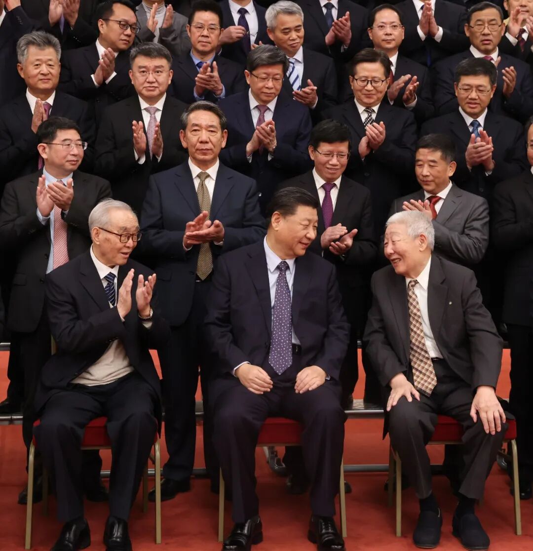 今年2月22日习近平会见嫦娥五号任务参研参试人员代表合影留念时坐在习近平左侧的是92岁的孙家栋“两弹一星”元勋、探月工程首任总设计师右侧便是栾恩杰
