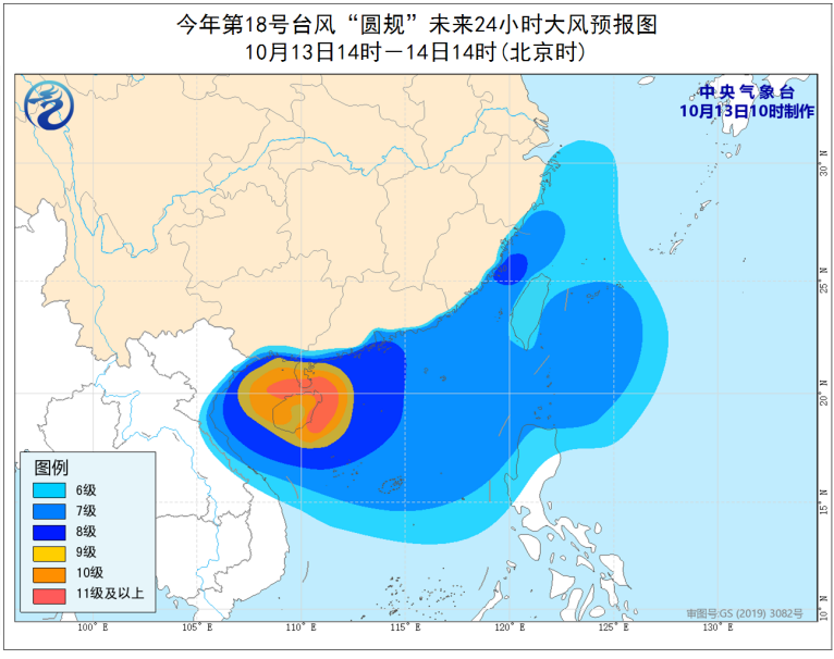 受台风“圆规”影响,海南、福建、浙江、广东、台湾等地将有明显风雨影响。大风预报13日14时至14日14时,南海西北部、琼州海峡、北部湾、广东西部沿海及雷州半岛、海南岛及其沿海和广西沿海等地的部分海域或地区的风力可达9—10级、阵风11—13级,“圆规”中心经过的附近海域或地区的风力有11—13级,阵风可达14—16级。